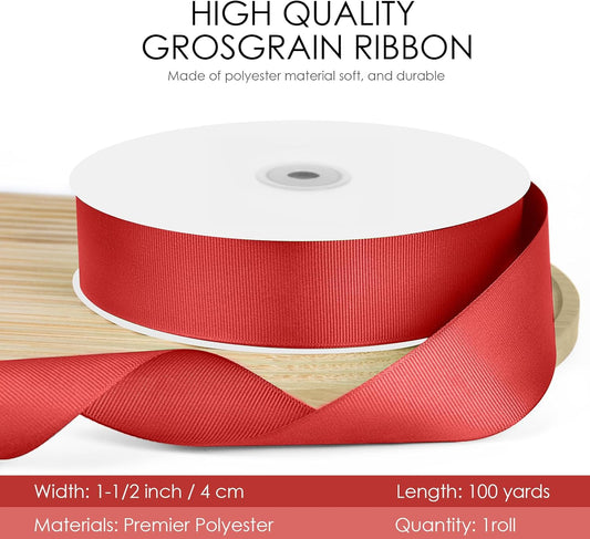 100 Yards 1.5 inch Grosgrain Ribbon, Solid Color Fabric Ribbon Perfect for Gift Wrapping, Wedding, Handmade Bows, Floral Bouquets and Party Decoration(red)