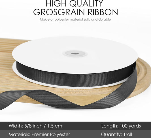 100 Yards 5/8 inch Grosgrain Ribbon, Solid Color Fabric Ribbon Perfect for Gift Wrapping, Wedding, Handmade Bows, Floral Bouquets and Party Decoration(Black)