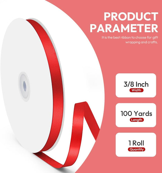 3/8" x 100 Yards Satin Ribbon - Red Silk Ribbon with Spool - Ideal for Gift Wrapping, Floral Bouquets, Crafts, Wedding Party Decorations, Christmas and Sewing Projects