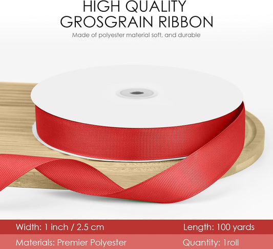 100 Yards 1 inch Grosgrain Ribbon, Solid Color Fabric Ribbon Perfect for Gift Wrapping, Wedding, Handmade Bows, Floral Bouquets and Party Decoration(red)