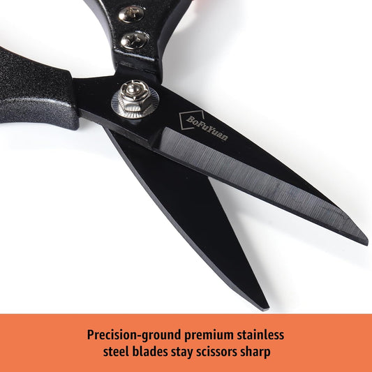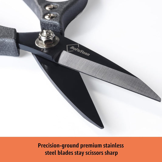 Heavy Duty All Purpose Scissors, Stainless Steel Blades, Black Orange Comfort Grip Handle, 8.5 Inch Professional Multipurpose Utility Sharp Shears for Kitchen, Garden, Office, Craft, Sewing
