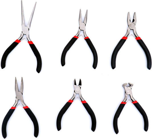 DURATECH Mini Pliers Set, 6PCS Jewelry Pliers Set, CRV Construction, Includes Needle Nose, Diagonal, Long Nose, Bent Nose, End Cutting and Linesman Pliers, for Making Crafts, Repairing Electronic