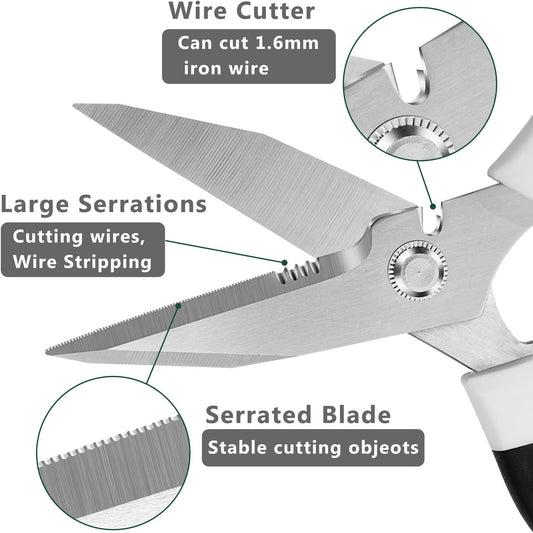 Utility Scissors Heavy Duty: sharp Scissors All Purpose heavy duty, Easy Cutting Carpet, Cardboard, Wires, Leather, Fabric(8'' White)