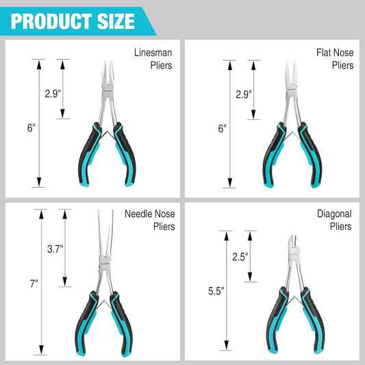 DURATECH 4PCS Long Reach Pliers Set with Pouch - Needle Nose, Diagonal, Linesman and Flat Nose, Mini Extra Long Pliers Set for Jewelry Making, Wire Bending and Object Gripping on Narrow Space