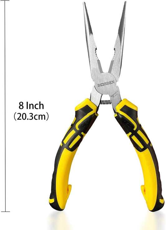 BOOSDEN® 8 inch Needle Nose Pliers with Side Cutters, Precision Long Nose Pliers with Wire Cutters, Professional Needle Nose Spring Loaded Pliers, Used for Cutting Clamping Pinching Jewelry Making