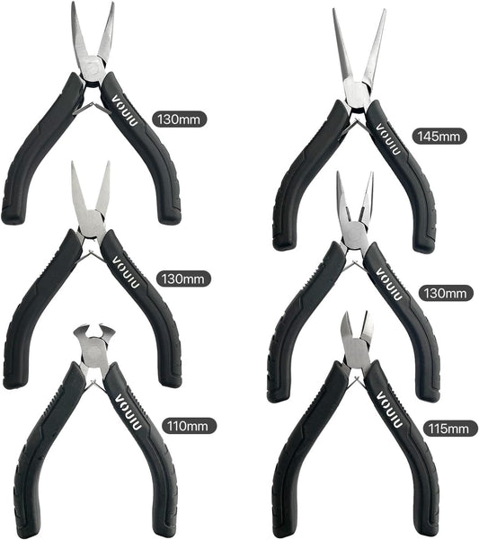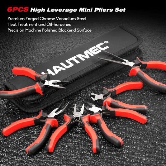 HAUTMEC 6PCS Mini Pliers Set High Leverage Multi Small Pliers Tool Set with Small Needle Nose Pliers Set, Linesman, Long Nose, Bent Nose, Diagonal Cutters, End Cutting Plier for Jewelry and Electronic