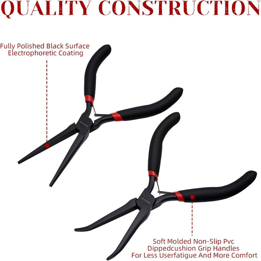Needle Nose Pliers Set, 5" Long Nose Pliers for Wire Bending, 2 Pack High Carbon Steel Nose Cutters, Serrated Jaw Plier for Jewelry Making, Electronics Repair, Object Grasping, Craft Making