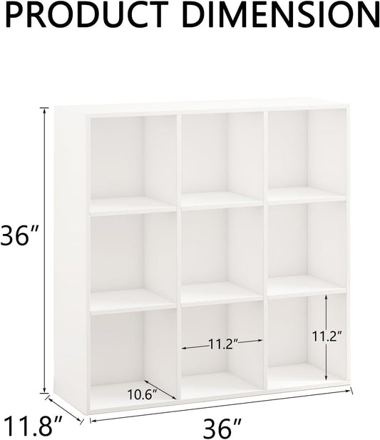 Wooden 9 Cube Storage Organizer with Closed Back Panel,White Cube Shelf Heavy Duty Cubby Storage Organizer with Compartments for Living,Display Shelf,Bookshelf