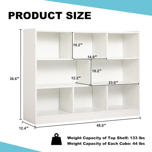 Giantex 6-Cube Bookcase, 3-Tier Cubby Bookshelf, Horizontal Vertical Display Rack with Anti-Tipping Kits, Modern Storage Organizer Shelf Unit for Bedroom, Living Room, Study Room, White
