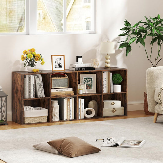 Giantex 8-Cube Bookcase, Floor Standing Bookshelf with Storage & 2 Anti-Tipping Kits, Open Storage Organizer, Cubby Wooden Book Shelf for Living Room, Study & Bedroom, Rustic Brown