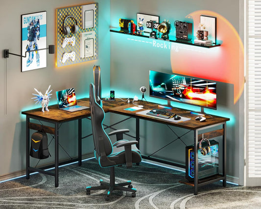 Coleshome 66" L Shaped Gaming Desk with Outlet, L Shaped Desk with CPU Stand, Corner Computer Desk, Home Office Desk, Writing Desk, Vintage