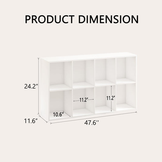 Wooden 8 Cube Storage Organizer with Closed Back Panel,White Shelf Heavy Duty Cubby Storage Organizer with Compartments for Living,Display Shelf,Bookshelf (White, 8-Cube)