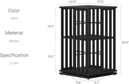 YOWOS Rotating Bookshelf Tower, 360 Display Spinning Bookcase, Bamboo Bookshelf Floor Standing Storage Rack, Wood Narrow Book Shelf Organizer for Kids&Adults (Black, 2 Tier)