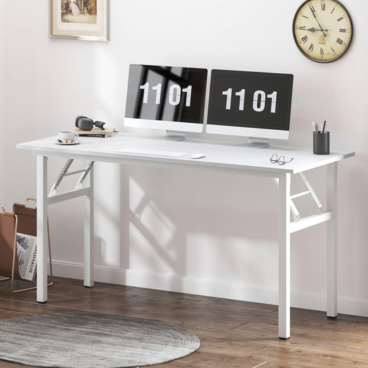 Need Folding Desk, 54 inch Large Computer Desk for Home Office, No Install Needed Study Student Writing Table Desk Workstation, White