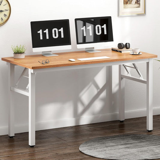 Need Computer Desk Office Desk 62 inches Folding Table with BIFMA Certification Conference Table Workstation,Teak White