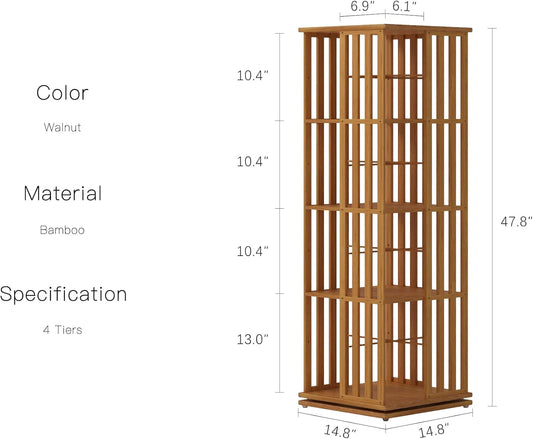 YOWOS Rotating Bookshelf Tower, 360 Display Spinning Bookcase, Bamboo Bookshelf Floor Standing Storage Rack, Wood Narrow Book Shelf Organizer for Kids&Adults (Walnut, 4 Tier)
