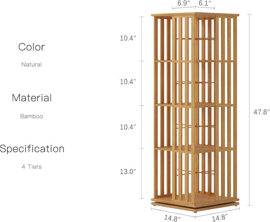 YOWOS Rotating Bookshelf Tower, 360 Display Spinning Bookcase, Bamboo Bookshelf Floor Standing Storage Rack, Wood Narrow Book Shelf Organizer for Kids&Adults (Nature, 4 Tier)