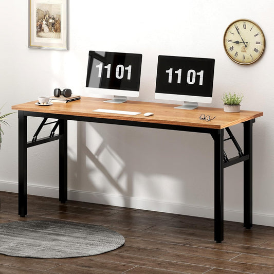Need Computer Desk Office Desk 62 inches Folding Table with BIFMA Certification Computer Table Workstation No Install Needed, Teak AC5BB-157