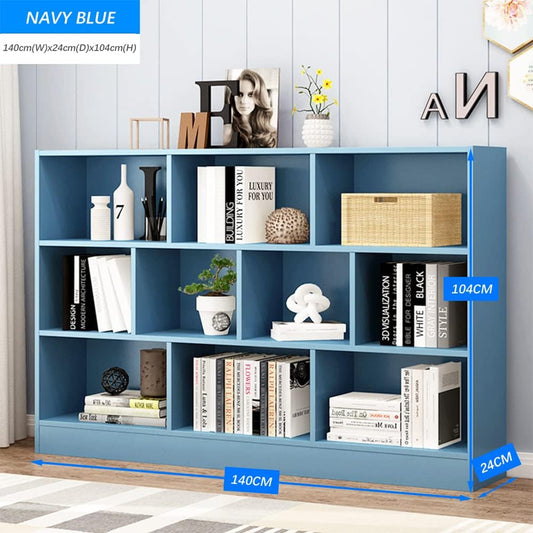 IOTXY Wooden Open Shelf Bookcase - 3-Tier Floor Standing Display Cabinet Rack with Legs, 10 Cubes Bookshelf, Bright Blue