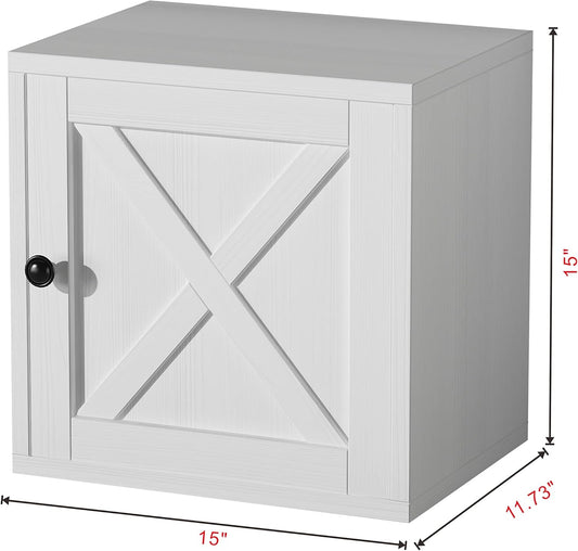 FUSUNBAO Magic DIY Cube Storage Organizer Stackable Cubes for Home Books Clothes Toy-Modular Cubby Storage System-Office Cubical-Bookcase Closet (Pure White-Washed, Door Cube)