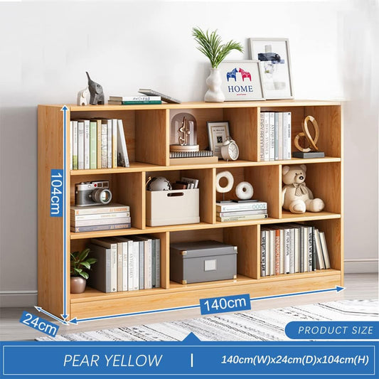 IOTXY Wooden Open Shelf Bookcase - 3-Tier Floor Standing Display Cabinet Rack with Legs, 10 Cubes Bookshelf, Pear Yellow