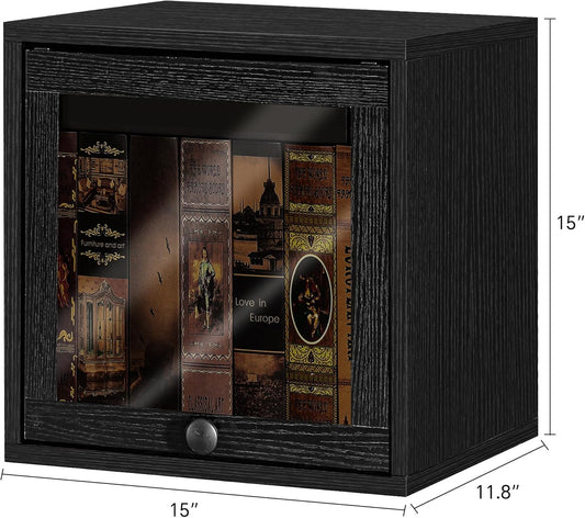 FUSUNBAO Magic DIY Cube Storage Organizer Stackable Cubes for Home Books Clothes Toy-Modular Cubby Storage System-Office Cubical-Bookcase Closet(Black, Glass Door Cube)