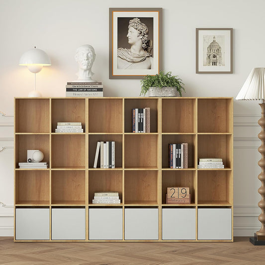 Wooden Cube Storage Organizer with Closed Back Panel, 11in Cube Shelf Opening, Bookshelf, Display Shelf,Closet Cabinet for Home and Office (Natural Oak, 6-Cube 35.98L*9.45W*24.09H)