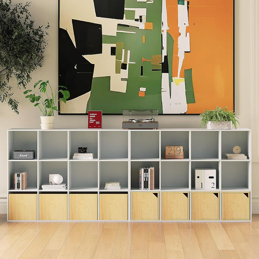 Wooden 12-Cube Storage Organizer with Closed Back Panel, 11in Cube Shelf Opening, Bookshelf, Display Shelf,Closet Cabinet for Home and Office,White Oak