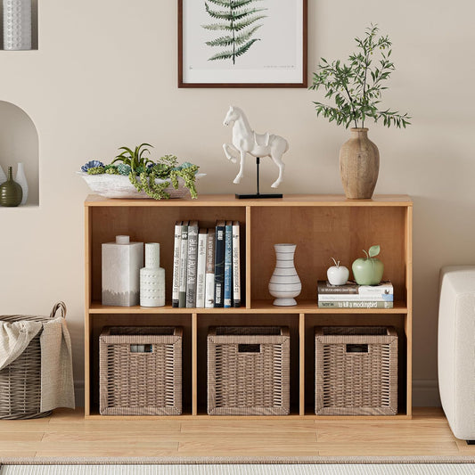 Wooden Cube Storage Organizer with Closed Back Panel, 11in Cube Shelf Opening, Bookshelf, Display Shelf,Closet Cabinet for Home and Office (Natural Oak, 5-Cube 35.98L*9.45W*24.09H)