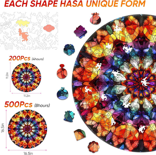Wooden Jigsaw Puzzles - Crystal Mandala Wooden Puzzles for Adults 500 Pcs, 16.7'' Luxurious Shaped Wood Puzzle, Beautiful Package, Best Gift Toys for Adults and Kids, Family Game
