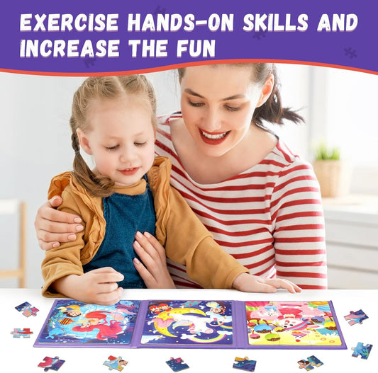 Magnetic Puzzles for Kids Ages 3-5, 3 in 1 Toddler Fairy Jigsaw Puzzle Book, Kids Travel Puzzles Toys, Preschool Learning Toy for Kids 3-8 Year (Fairy Tales)