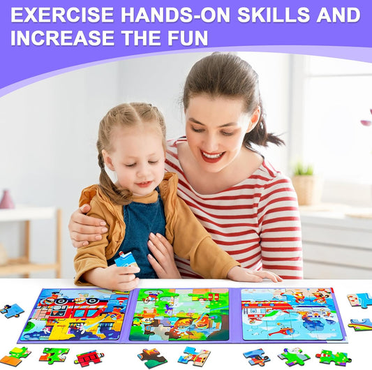 Fire Brigade Magnetic Puzzles for Toddlers, 3 in 1 Jigsaw Puzzle Book, Travel Puzzles for Preschool Learning Ages 3-8