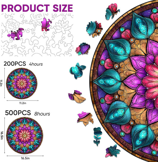 Wooden Puzzles for Adults, Mandala Puzzles 200 Pieces, Unique Shaped Jigsaw Puzzles for Adults and Kids, Birthday Gifts Fun Challenge Family Game 11.2'' x 11.2''