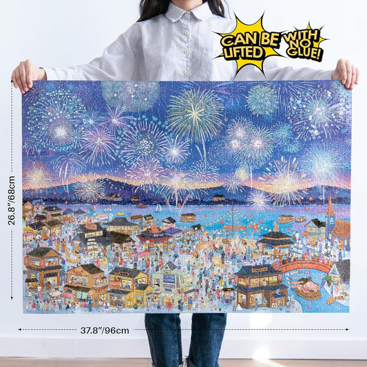 MOMIBOOK Puzzles for Adults 2000 Pieces Jigsaw Puzzles of Fireworks Night Tour, Colorful Powder Painting Image Chinese Twon Challenging Hard Impossible Puzzle Unique Party Christmas Birthday Gifts