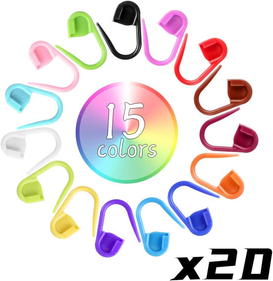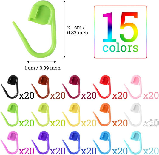 LUNARM 300 Pcs Stitch Markers, 15 Colors Crochet Stitch Needle Clip Knitting Plastic Locking Needle Clip Counter with Clear Storage Case for DIY Handicraft Place Buckle Marker