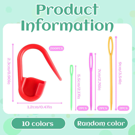 LUNARM 200 Pcs Stitch Markers for Crocheting, 10 Color Crochet Stitch Markers Knitting Locking Clip Pins with 6 Yarn Needles for DIY Craft Sewing