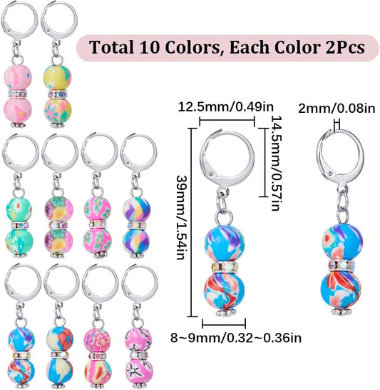 SUNNYCLUE 1 Box 20Pcs Stitch Markers Crochet Stitch Marker Cute Round Polymer Clay Beads Charms Clip On Removable Leverbacks Zipper Pull Charm Locking Knitting Markers for Yarns DIY Sewing Quilting