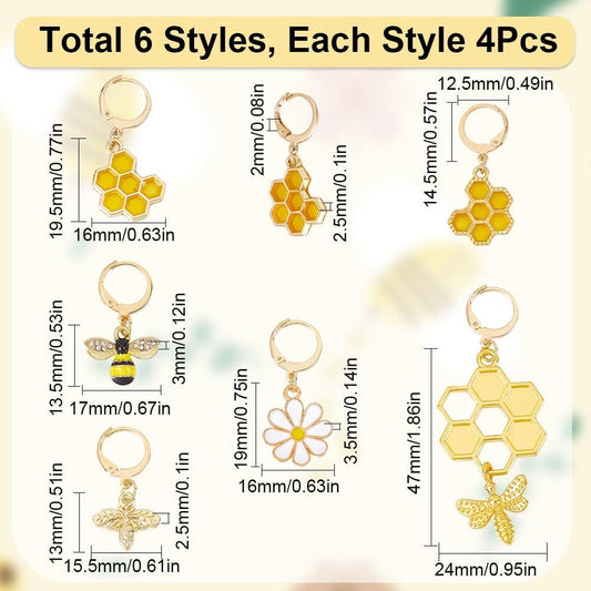 SUNNYCLUE 1 Box 12Pcs Bee Charms Knitting Stitch Markers Cute Removable Clip on Bracelets Charm Daisy Flowers Charms Lobster Claw Clasps Crochet Stitch Markers for DIY Knitting and Crocheting Sewing