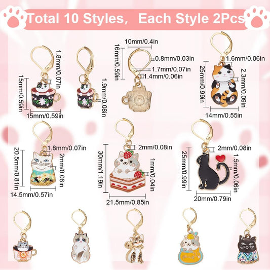 SUNNYCLUE 1 Box 20Pcs 10 Style Locking Stitch Marker Cute Stitch Markers Cat Pet Animal Leverback Knitting Charms Knitting Tools for Weaving Sewing Needleworks Women Adults DIY Crafts