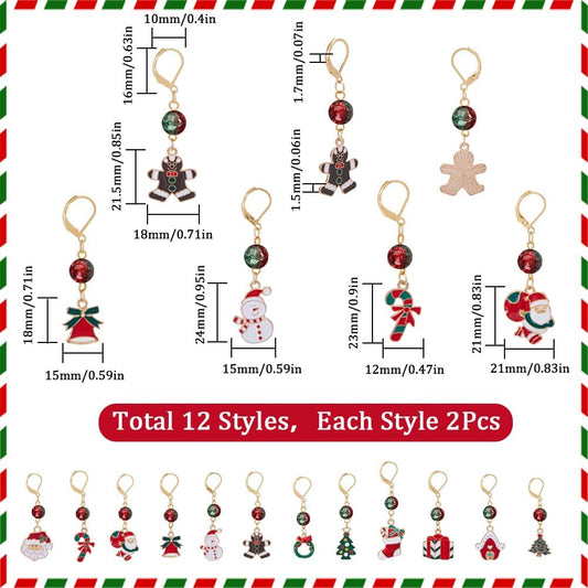 SUNNYCLUE 1 Box 24Pcs 12 Style Christmas Crochet Stitch Markers Stitch Marker Small Enamel Crochet Knitting Charms for Knitting Weaving Sewing Needleworks DIY Craft Supplies