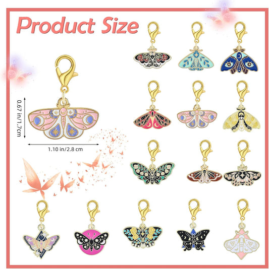 BEEFLYING 16Pcs Butterfly Stitch Marker Charms for Crocheting and Knitting, Removable Alloy Enemal Crochet Knit Stitch Marker Pendant with Lobster Clasp for Sewing Quilting Handmade Jewelry
