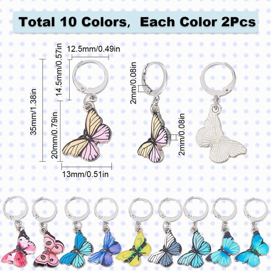 SUNNYCLUE 1 Box 20Pcs Stitch Markers Crochet Stitch Marker Butterfly Enamel Cute Charms Removable Leverback Clasp Charm Locking Metal Knitting Markers for Weaving Sewing Knit Quilting DIY Zipper Pull