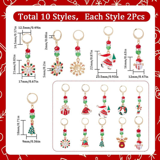 SUNNYCLUE 1 Box 20pcs Christmas Stitch Markers Crochet Knitting Markers Rhinestone Locking Stitch Markers Leverback Kntting Charms for Knitting Weaving Sewing Needleworks Women Adult DIY Crafts