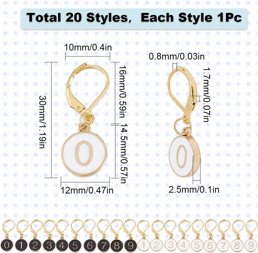 SUNNYCLUE 1 Box 20Pcs Number 1~9 Stitch Markers Charms Crochet Enamel Cute Removable Clip on Leverback Clasp Charm Locking Metal Knitting Markers for Weaving Sewing Knit Quilting DIY Zipper Pull