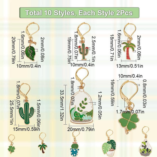 SUNNYCLUE 1 Box 20Pcs Stitch Markers Cute Lobster Clasp Charms Green Plants Cactus Crochet Stitch Marker Removable Knitting Stitch Markers Metal Crocheting Markers for Sewing Weaving Knit Threading