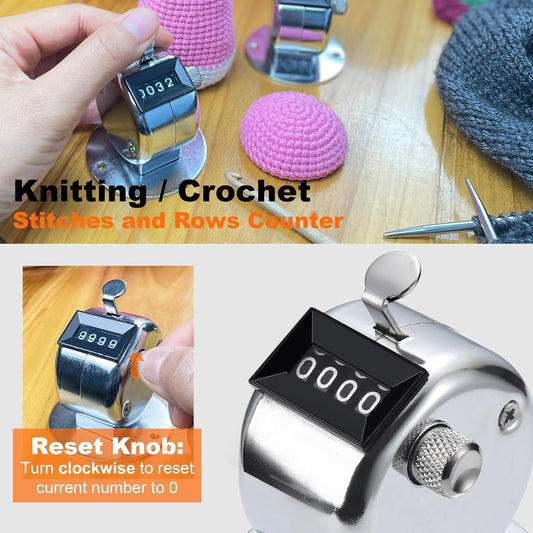 YOJOB Stitch Counters for Knitting and Crocheting, Metal Knitting Row Counter, Hand Tally Clicker Counter (1 Pack)