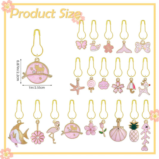 BEEFLYING 20Pcs Cute Mixed Pink Stitch Markers, Alloy Enamel Knitting Stitch Marker Charms Pendants for Sewing Crocheting and Knitting
