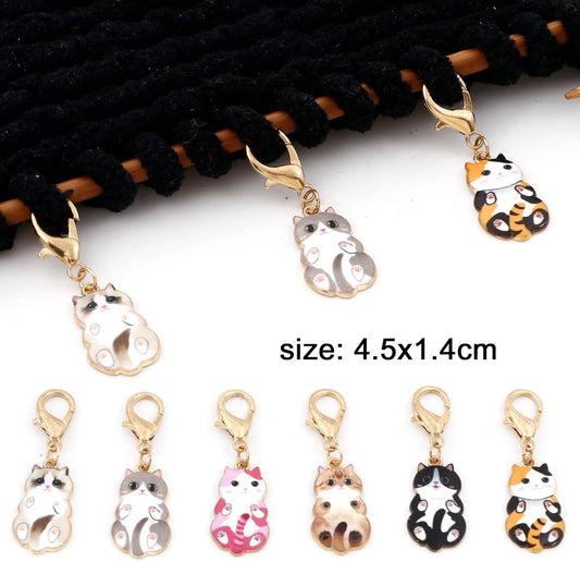 DoreenBeads 6Pcs Cat Stitch Marker Charms for Crocheting and Knitting, Locking Alloy Enamel Crochet Stitch Marker with Lobster Clasp Knitting Crocheting Accessories Gold