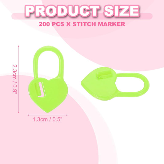 uxcell 200pcs Stitch Markers for Crocheting, Heart Shaped Crochet Marker Needle Clip Counter for Knitting Clothing Tag DIY Craft,Fluorescent Green