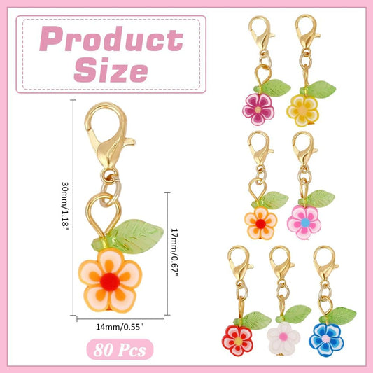 80Pcs Flower Stitch Markers Charms Handmade Polymer Clay Pendant Decorations Alloy Lobster Claw Clasps Charms Knitting Crochet Notions Clip On for Weaving Sewing Bag Ornaments